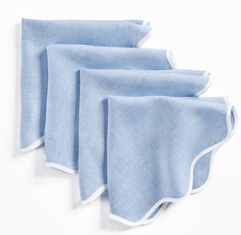Classic and beautiful, our Giselle scallop edge napkins add undeniable charm to your table. Hand-crafted of 100% pure linen with a tailored trim detail in complimentary colors, this napkin was designed for creating festive special occasions and holiday tables. Style the set alongside our coordinating placemats for a lovely placesetting.