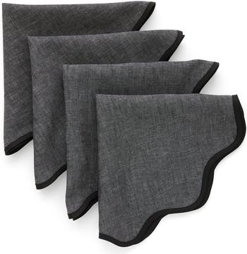 Linen Dinner Napkins Set of 4, 20 Inch Round for Dining Table, Holiday and Everyday Table Decor - Giselle Scallop Edge