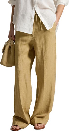 Summery staple pants are cut from cool linen and closed with a comfy drawstring waist.
