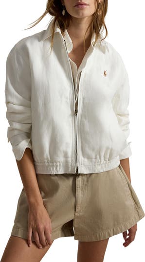 A polo pony authenticates a lightweight jacket cut from summery linen.