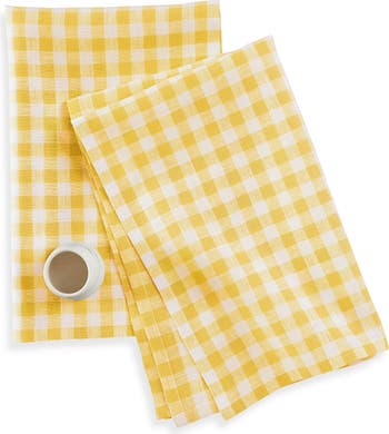 Add color and a classic pattern to your kitchen with our Gingham check kitchen towels. Hand-crafted of 100% pure linen by our skilled artisans, these tea towels are up for any kitchen task. Dry dinnerware or add a sparkle to glassware with these absorbent and quick drying linen towels. The hanging loop keeps towels handy for cleaning up spills or drying hands. Available in sunny hues and arrives in a set of two.
