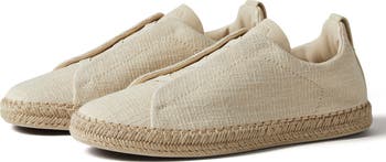 Crafted in Italy from a textured linen blend, this slip-on sneaker captures laid-back ease with a refined finish. The triple crisscross elastic straps adapt to your foot for a flexible fit, smooth leather details sharpen the lines and the espadrille-style sole gives it that sun-soaked, off-duty energy.