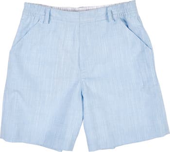 Light and polished for warm-weather days, these shorts are crafted from light blue linen-look woven in soft, breathable 100% cotton. Designed with front slant pockets, a neat fake fly, and belt loops, they offer a tailored look with easy, pull-on comfort thanks to a back elastic waistband.\nFully lined for comfort and coverage, they’re perfect for pairing with camp shirts, polos, or tees for vacation outings and sunny-day adventures.