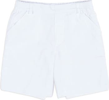 Ideal for dressier summer days, these boys' white linen-look shorts feature front slant pockets, faux fly detail, belt loops, back elastic, and a fully-lined interior for comfortable, stylish wear.