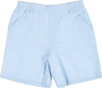 Ideal for dressier summer days, these boys' light blue linen-look shorts feature front slant pockets, faux fly detail, belt loops, back elastic, and a fully-lined interior for comfortable, stylish wear.