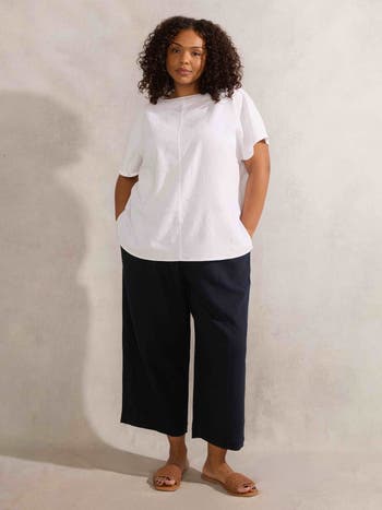 In a timeless Navy, these Pants are cut from a soft linen mix that’s so comfortable to wear. With a flattering tapered leg, they have a stylish cropped length that’s so easy to wear. An elasticated waist with a tie ensures the perfect, comfortable fit, while side pockets and seams down each leg add functionality and style.