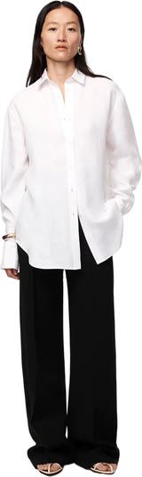 Two darts give our oversized 100% linen button-front shirt a slight cocoon shape, punctuated by two classic cuffs. Our linen is traceably produced from non-GMO flax grown in Europe with zero irrigation and zero waste. In sourcing our flax this way, we are committing to unmatched excellence honed over centuries of craftsmanship and practice.