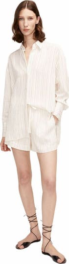 Designed with a relaxed, wide-leg silhouette and soft, silky yarn dye-striped fabric, a pajama-style short easily layers over swimsuits or pairs back to the matching button-front shirt for a complete look.