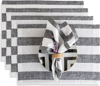 Whether you're entertaining indoors or poolside, the bold stripes of our Cabana Stripe Placemats brings any table a statement look that sets an inviting scene. Made of 100% pure linen, our set of four placemats provide classic style that pairs well with your favorite dinnerware and flatware for casual entertaining. Complete the look with other linens from our Cabana Stripe Collection, including a coordinating table runner and dinner napkins.