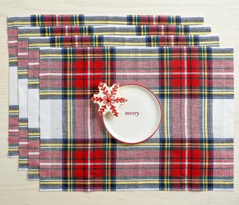 Add tradition and charm to your holiday table with our Stewart Plaid placemats. Inspired by Scottish design, this cheery tartan plaid pattern woven of 100% pure linen makes a merry and bright holiday table