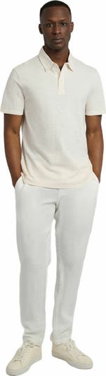 Made from a linen jersey knit, this sweater is modeled on a classic polo with a standless shirt collar and button-up placket. It’s cut for a relaxed fit, featuring short sleeves and a straight hemline.