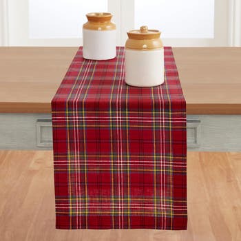 Make the holidays bright with our Classic Tartan Plaid Table Runner. A festive favorite for generations this traditional red tartan plaid table runner will take you from morning brunch to a chic holiday dinner party. Made of 100% linen and complements a variety of holiday dinnerware.
