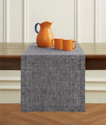 A pure linen classic with a chambray effect, this hand-crafted Milan Table Runner is hand woven from 100% linen and is as soft and luxurious as the vintage classic heirloom linens that inspired them. Each runner is beautifully edged with an intricate needlework hemstitched border, tailored with a one-inch hem and mitered corners. Like all fine linens, this table runner seasons with age and becomes softer with washings. Ironing is optional. Complete the look with Milan Placemats and Dinner Napkins for a coordinated style.