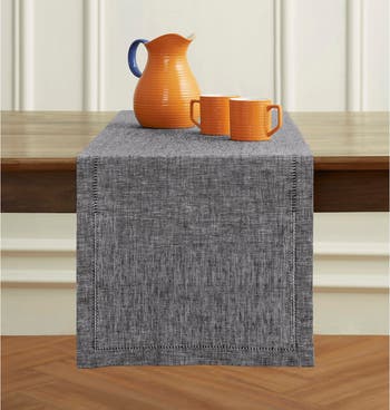 A pure linen classic with a chambray effect, this hand-crafted Milan Table Runner is hand woven from 100% linen and is as soft and luxurious as the vintage classic heirloom linens that inspired them. Each runner is beautifully edged with an intricate needlework hemstitched border, tailored with a one-inch hem and mitered corners. Like all fine linens, this table runner seasons with age and becomes softer with washings. Ironing is optional. Complete the look with Milan Placemats and Dinner Napkins for a coordinated style. Our table runner size charts (for exact measurement): 1) One Size - 14 x 36 Inch, 2) XX-Small - 14 x 48 Inch, 3) X-Small - 14 x 60 Inch, 4) Small - 14 - 72 Inch, 5) Medium - 14 x 90 Inch, 6) Large - 14 x 108 Inch, 7) X-Large - 14 x 120 Inch, 8) XX-Large - 14 x 132 Inch, 9) Medium/Large - 14 x 144 Inch, 10) Large/X-Large - 14 x 156 Inch.