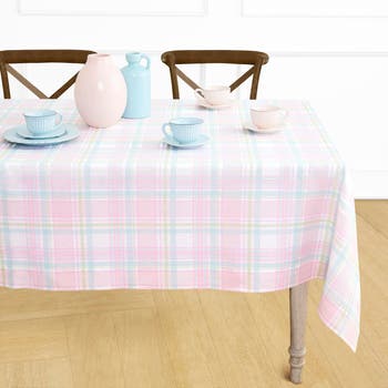 Bring a splash of Palm Beach charm to your next gathering with our Palm Beach Plaid Tablecloth. Inspired by the iconic charm of Palm Beach, this tablecloth is made with a playful palette of pink, green and a mix of tropical colors. Hand-crafted by our skilled artisans for poolside brunches, fancy little dinner parties, wedding showers and summer soirées. Available in a wide variety of sizes.Our tablecloth size charts (for exact measurement): 1) One Size - 54 x 72 Inch, 2) Small - 60 x 90 Inch, 3) Medium - 60 x 102 Inch, 4) Large - 60 x 108 Inch, 5) X-Large - 60 x 120 Inch, 6) XX-Large - 60 x 126 Inch, 7) Medium/Large - 60 x 132 Inch, 8) X-Large/XX-Large - 60 x 140 Inch, 9) X-Large/XX-Large - 60 x 144 Inch, 10) XXX-Large - 60 x 156 Inch.