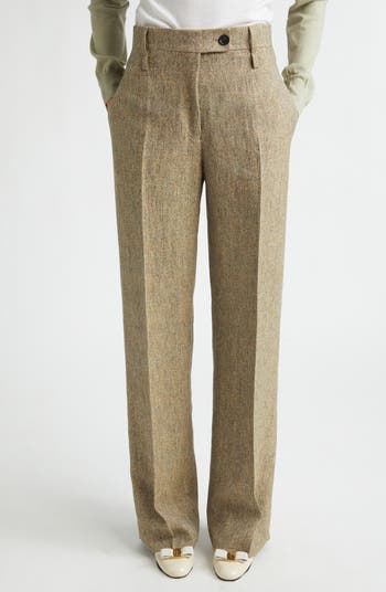 Rich linen gives these flat-front pants a dimensional finish that reads instantly considered. Tailored through the waist then released into a creased, relaxed-straight-leg silhouette, they bring a long, clean drape with every step.
