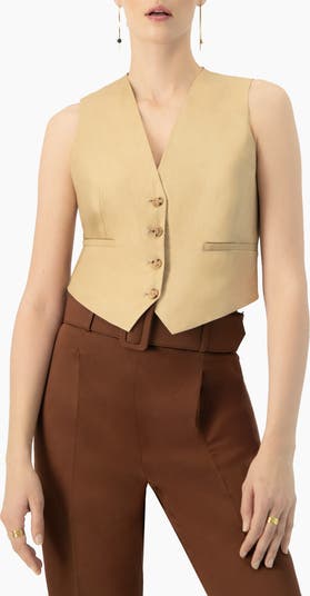 Sleek linen vest featuring faux pockets and front buttons
