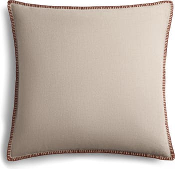 Contrasting whipstitching adds a touch of color to the fine linen of this pillow cover that brings a casually chic finish to your bedding ensemble.