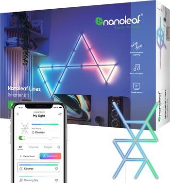 Nanoleaf Lines are smart backlit LED light bars that deliver stunning RGBW illumination. Connect Lines together into your own personalized geometric design, and customize with 16M+ colors and light animations to create a statement piece truly unique to your space. Available in 60 degrees and 90 degrees connecting options that you can mix-and-match for limitless design possibilities. The Lines are packed with innovative smart technology to deliver fun and functional features like Music Sync, Screen Mirroring, Schedules, and more, which means you'll never run out of new ways to experience your lighting your way.