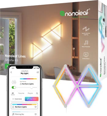 - Build & Expand Your Designs: Design your own unique layouts for a stunning, futuristic ambient glow. Expand your creation with Lines 60 Degrees Expansion Packs (sold separately) to take your setup to the next level. Color-Changing Animations: Customize your lights with colors and motion effects. Transition colors slowly for ambience that sets the perfect mood, or increase the speed to get the party started. 16M+ RGBW Colors: Enjoy virtually limitless color options. Choose from preloaded scenes or create your own color-changing scenes for the perfect ambience. Simple Adhesive Setup: Easily mount Lines onto any flat surface using the included mounting tape — no drilling required. See Your Music Come to Life: Transform your favorite songs into dancing symphonies of color and light. Set how your lights react to music and sound in real time with various Rhythm Scenes available in the Nanoleaf App. Control It Your Way: Fully customize your lights with the Nanoleaf App (colors, lighting animations, schedules, and more), connect to a smart home assistant for hands-free control, or use the built-in controller. Mirror Your Screen: Colors from your screen reflect onto your panels for an immersive entertainment experience. Use Match mode for next-level movie nights and gaming sessions. Schedule Your Day: Automate your lights to turn ON/OFF at specific times and days to simplify your daily routines.