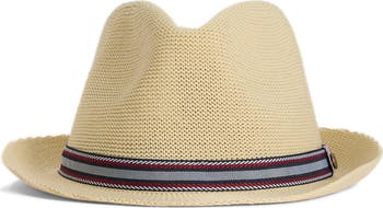 A striped band elevates an eye-catching trilby authenticated with the brand's signature tartan partially lining the inside.