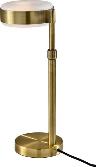 A white glass shade casts a warm, inviting glow that elevates your space anywhere you add the timeless, sophisticated touch of the antiqued-brass lamp.