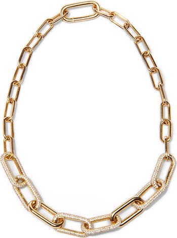 Our Link Collar Neklace is our take on the classic. Pavé encrusted crystals along selected links giving it a casual during the day and dressier at night.