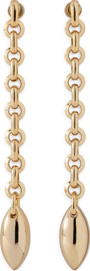 Shimmer form every angle with these statement-making linear earrings featuring glossy interlocked links and marquise-shaped drops.