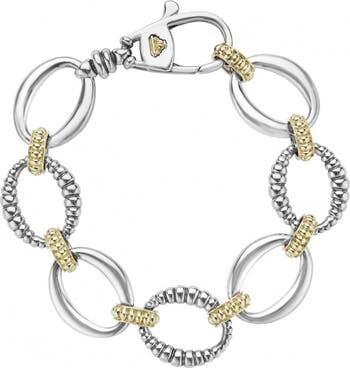 Shapely links cast in gleaming sterling silver are joined by luminous bands of 18-karat gold to form a stunning handcrafted bracelet.
