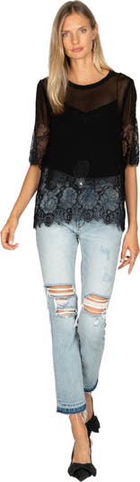 Secret Mission’s Linnea Top is crafted from 100% Organic Silk Crepe Georgette, reimagining a timeless silhouette with a modern romantic touch. The sheer body and half sleeves are finished with intricate lace panels along the cuffs and hemline, creating a graceful contrast of texture and transparency. Pair it with sleek tailoring such as our Nikita Pant or casual denim for an effortlessly refined look.