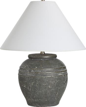 Crafted from hand-thrown ceramic, this dimmable table lamp features a tapered shade and a stunning olive wash that add style and an ambient glow to your space.