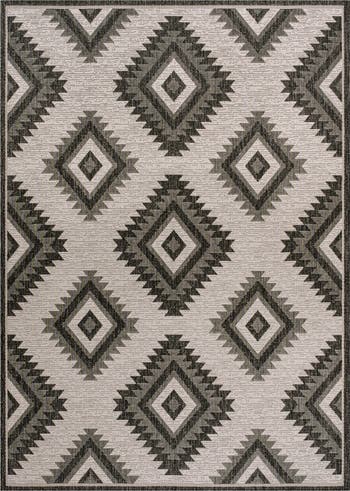 Inspired by vintage Moroccan and Southwestern motifs, this rug features a traditional geometric diamond pattern. It's made from durable synthetic fibers woven into a bold, updated design. Use this easy-care rug outdoors on a porch, or in the bedroom, living room or dining room.