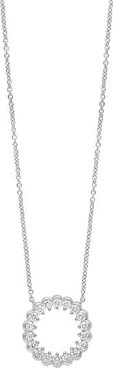 A circle of 20 diamonds delivers eternal shine to this pendant necklace handcrafted from 18-karat white gold.