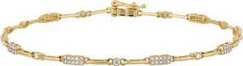 Part of our online trunk show, this style is available for a limited time from November 10 through December 23. Turn your everyday stack into a sparkling statement with this handcrafted station bracelet, where 99 round-cut diamonds catch the light in the warm glow of 18-karat gold.