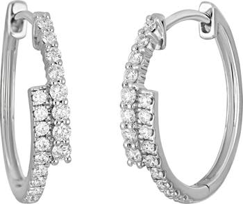 A diamond-illuminated bypass silhouette create a contemporary glow in these handcrafted 18-karat-gold hoops.