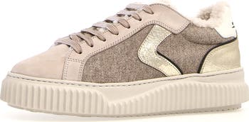 Genuine-shearling lining offers natural warmth and enhances the cushioning of this suede-and-wool sneaker.