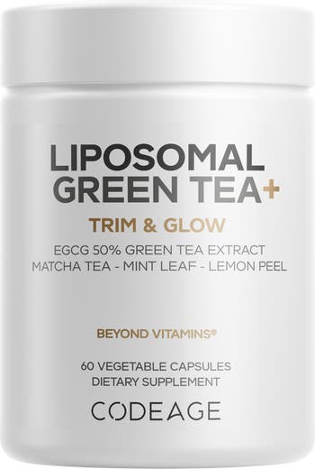 - Codeage Liposomal Green Tea+ supplement provides green tea extract standardized to 50% EGCG and 98% polyphenols for a concentrated profile.