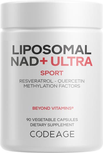 - Codeage Liposomal NAD+ ULTRA supplement capsules combine a potent mix of ingredients such as NAD+ (Nicotinamide Adenine Dinucleotide), quercetin, resveratrol, betaine anhydrous, riboflavin, and vitamin B12 as methylcobalamin.