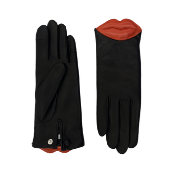 The Lips glove in 100% lambskin lined with Alpaca wool will keep your hands warm and feature a cardinal red kiss at the wrist.