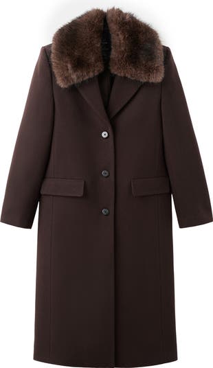 A luxuriously plush faux-fur collar shields your neck from chilly gusts of wind in this rich wool-blend coat cut in a tailored, longline silhouette.