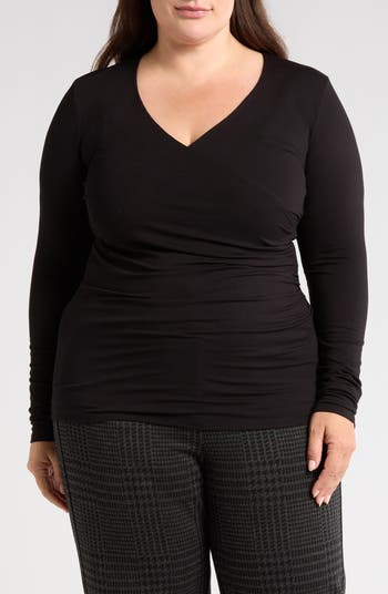 Move easily from work to weekend in this stretch-jersey top designed with a sleek wrapped front.