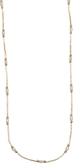 Cultured pearls intensify the modern elegance of this stunning necklace fashioned from sterling silver and plated in gleaming 18-karat gold.