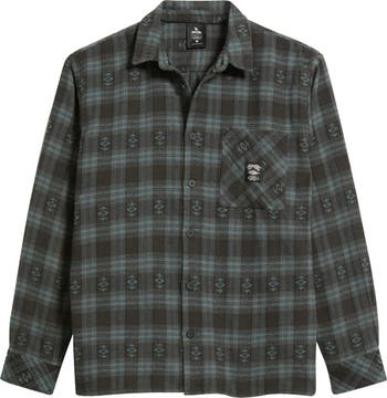 Geometric details stand out against a signature plaid print on a button-up shirt cut from cotton flannel for a soft and comfy feel.