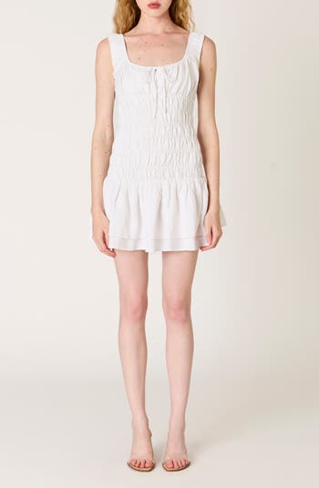 A sweetly smocked mini is cut from a breezy linen blend and ready for summery fun.