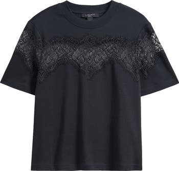 Bring dark romance to your T-shirt rotation with this boxy, softly oversized version paneled with sheer lace extending across the front and back yoke.