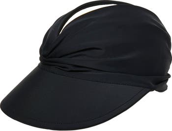 Ruching accents a bold slit along the crown of this ultrasoft neoprene visor made with a breathable cotton lining featuring the brand's signature logo.