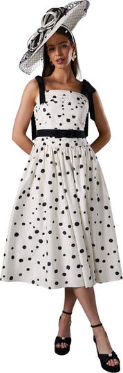 A stylish midi dress with a unique bow detail, perfect for any occasion. Comfortable fit with a trendy polka dot pattern.