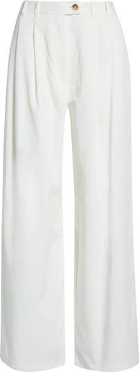 Crisp pleats add texture and polish to these wide-leg pants cut from lightweight cotton.