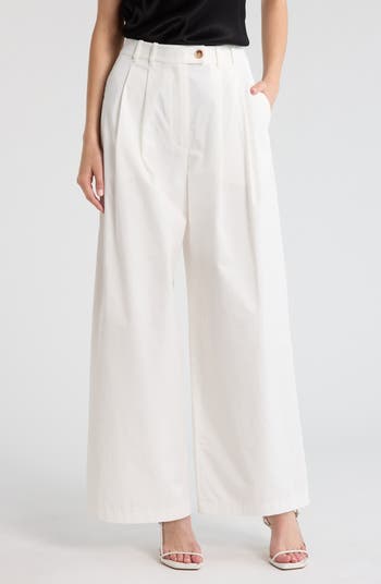 Crisp pleats add texture and polish to these wide-leg pants cut from lightweight cotton.
