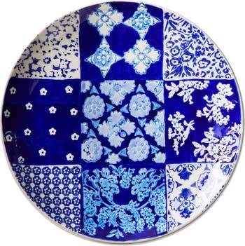 dive into the vibrant culture of lisbon with this dinner plate. crafted from indigo blue stoneware, the plate features unique designs created using traditional techniques like wax resist, hand painting, and hand stamping. dishwasher safe, but be mindful that it may get hot in the microwave.